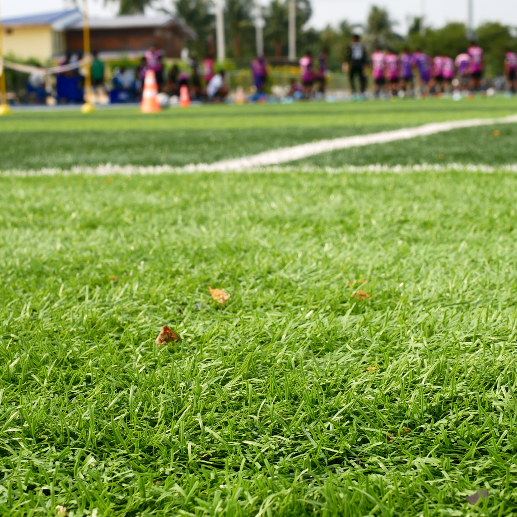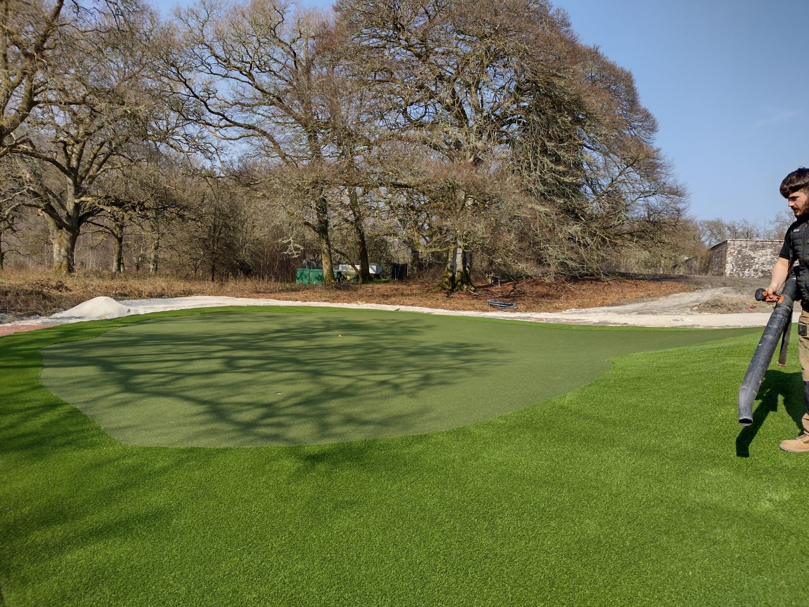 With the use of High-speed tufting within our production some of our grasses require a wrapping yarn to be used. These can sometimes be seen as a Whisby flossy material on the grass when initially installed. They are nothing to worry about and disappear with exposure to the regular elements of sun and rain.